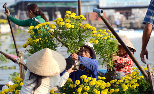 Từ đầu tháng Chạp, các lái hoa đã chọn bến để họp chợ. Những ghe hoa khác đến nhóm dần rồi hình thành chợ hoa sáng rực một khúc sông. Điều đặc biệt của khu chợ nổi độc đáo này là thời gian nghỉ Tết rất ngắn. Khoảng Mùng Hai Tết, chợ nổi đã “chiều khách” trở lại vì nhu cầu mua hàng đã có. Đó là những chàng trai, cô gái, khách nước ngoài du Xuân bằng đường sông rất cần đồ ăn thức uống sẵn có như bún, cháo, cà phê và những món quà đặc trưng của chợ nổi…